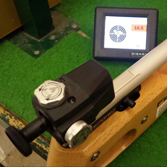 Wir trainieren mit Luftgewehren und mit einer Lichtpunktanlage.
